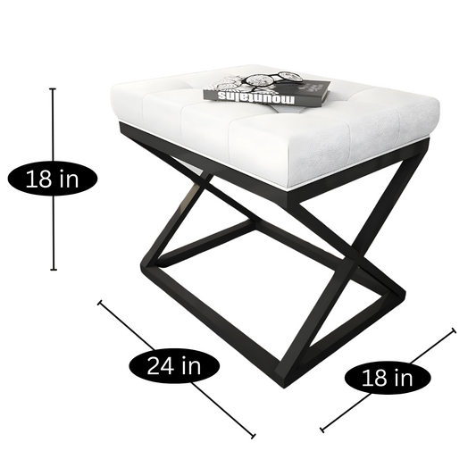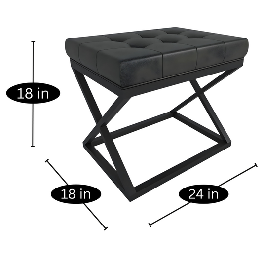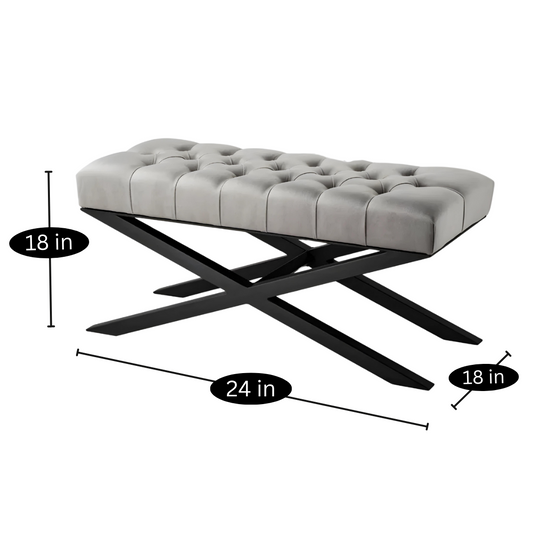 Cross Designer Black Ottoman Metal Bench with Grey Cushion
