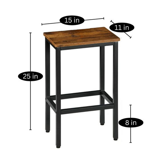 Axel Black Ottoman Metal Stool with Brown Wooden Slab