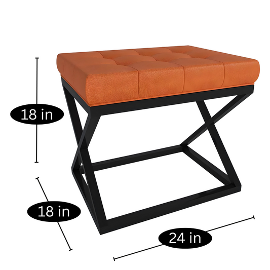 Anya Designer Black Ottoman Metal Bench with Brown Cushion