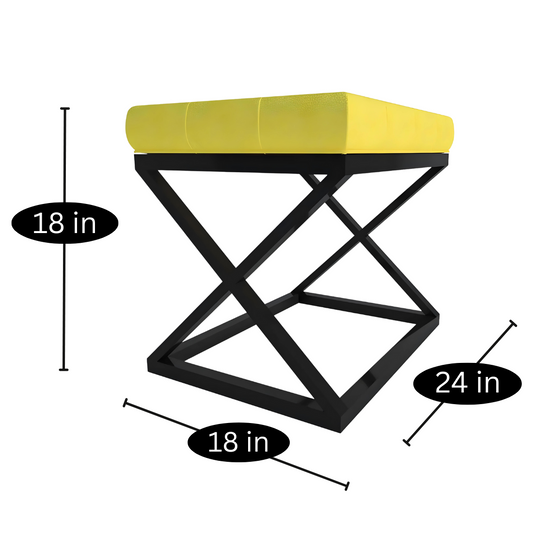 Della Black Ottoman Metal Stool with Yellow Cushion