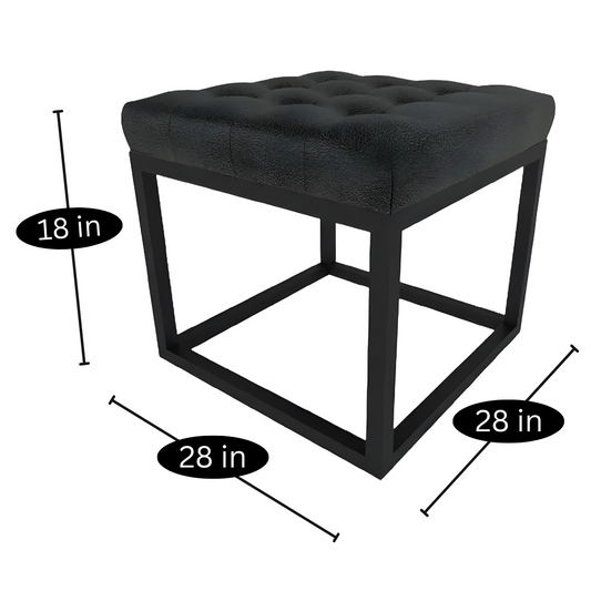 Berli Designer Black Ottoman Metal Stool with Black Cushion