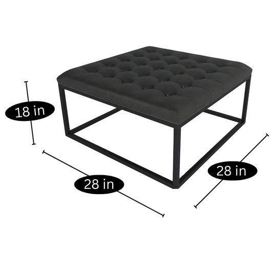 Berli Large Designer Black Ottoman Metal Stool with Black Cushion