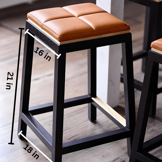 Arlo Black Ottoman Metal Stool with Wooden and Brown Cushion Top