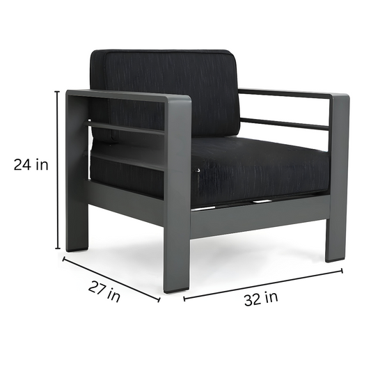 Grey Ebba 1 + 1 Two Seater Metal Sofa with Black Cushion