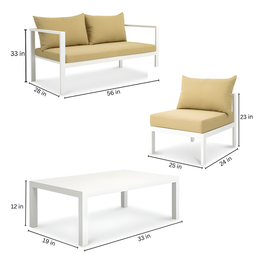 White Carter 2+1+1 Sofa Set with Camel Cushion - 4 Seater Sofa Set with Table
