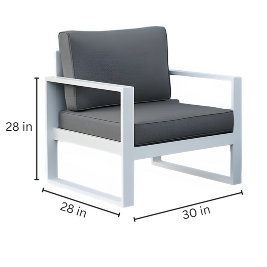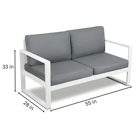 White Emery 1 + 1 Two Seater Metal Sofa with Grey Cushion