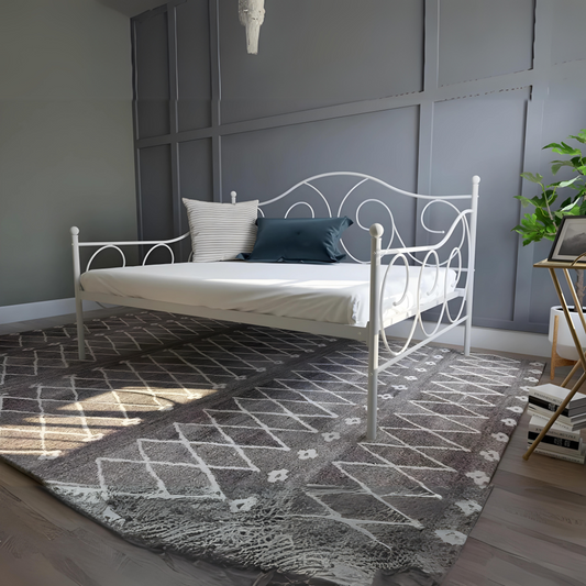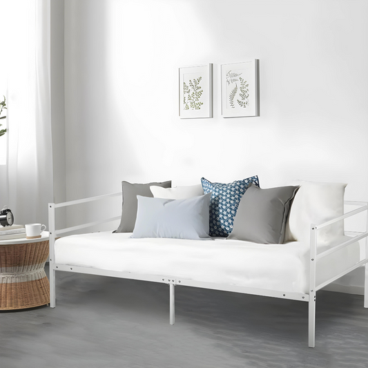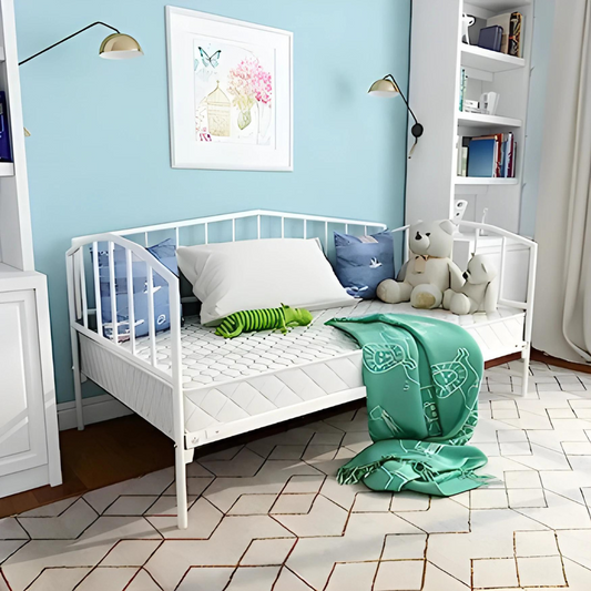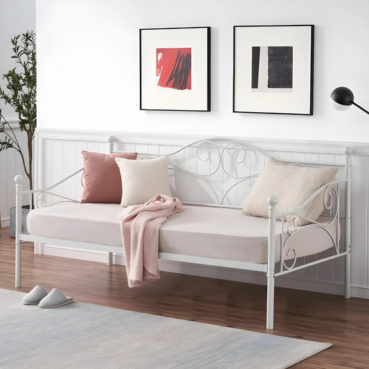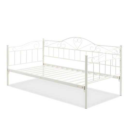 White Darrell Three Seater Metal Sofa Diwan with Designer Headrest