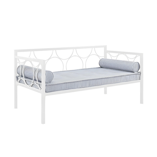 White Emberlei Three Seater Metal Sofa Diwan with Designer Headrest