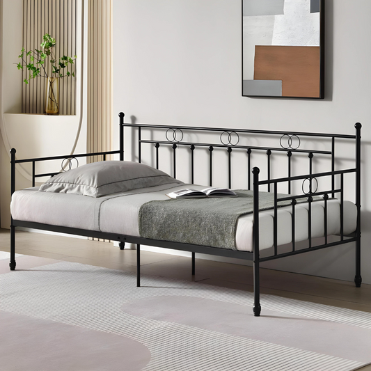 Black Troy Three Seater Metal Sofa Diwan with Designer Headrest