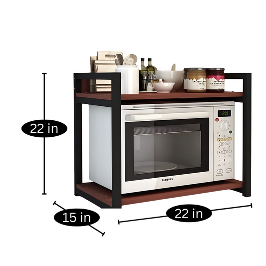 Multi Purpose Metal Shelf Stand in Black Finish with Wooden Slab - Metal Rack