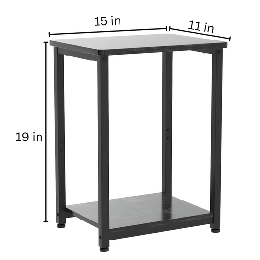 Metal Stand in Black Finish and Powder Coating with Brown Wooden Top and Bottom