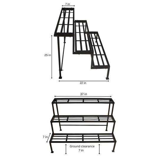 Multi Purpose Metal Stand in Black Finish - Three Steps Ladder Metal Stand