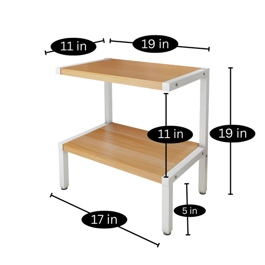 Metal Stand in White Finish and Powder Coating with Camel Wooden Top abd Bottom