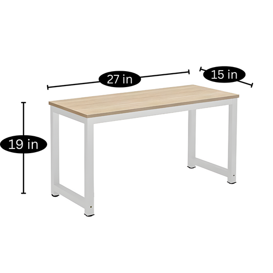 Metal Table in White Finish and Powder Coating with Camel Wooden Top
