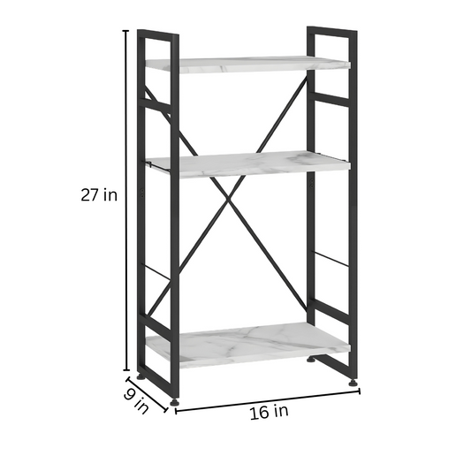 Multi Purpose Metal Shelf Stand in Black Finish with White Wooden Slab - Metal Rack