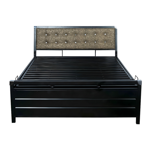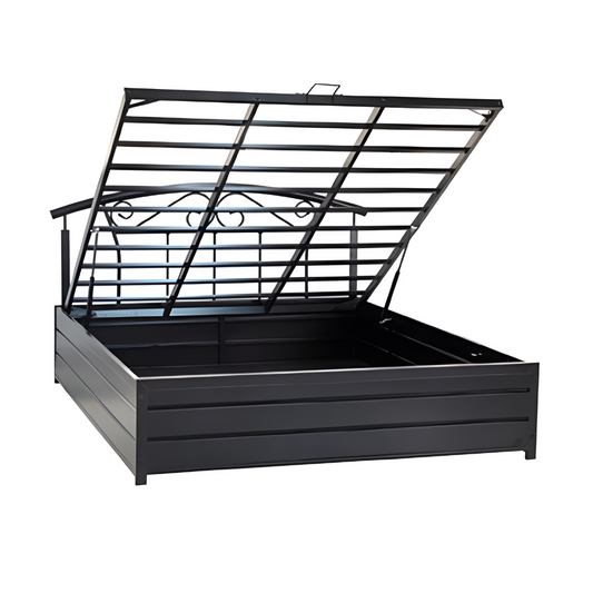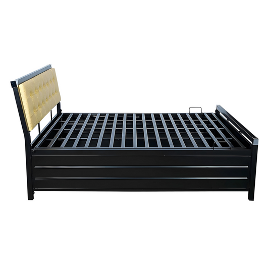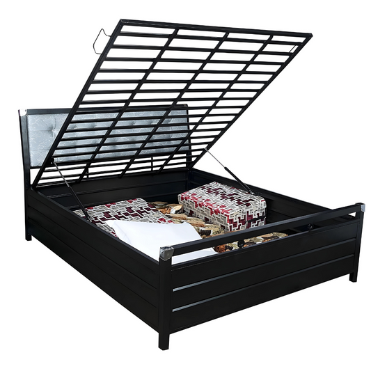 Kevin Hydraulic Storage Metal Bed (Color - Black) with Designer Headrest