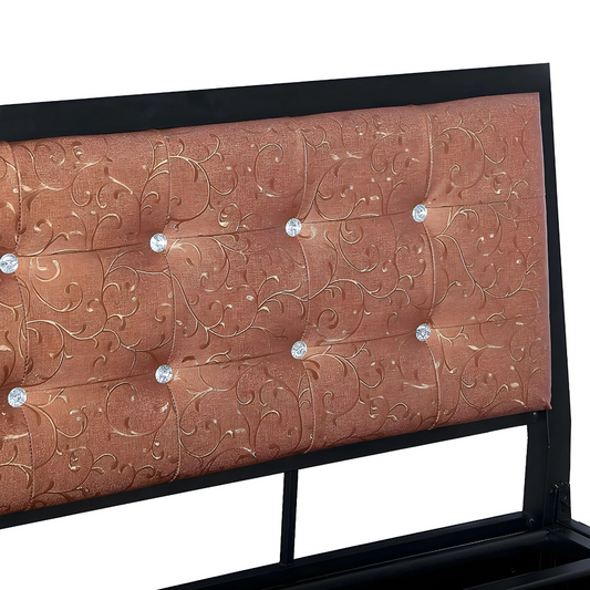 Heath Hydraulic Storage Metal Bed with Textured Brown Cushion Headrest (Color - Black)