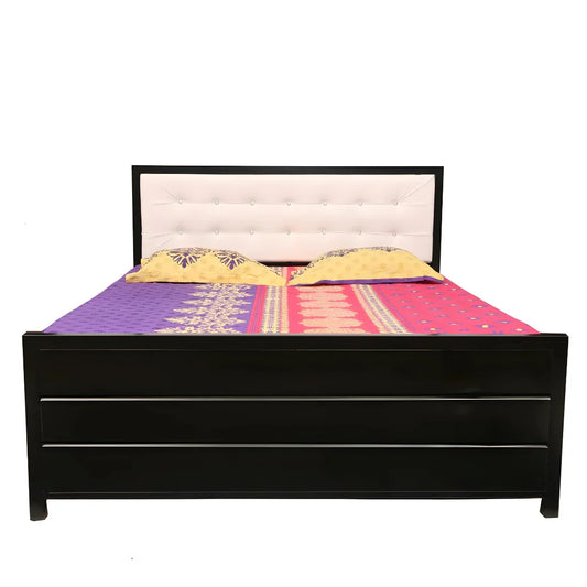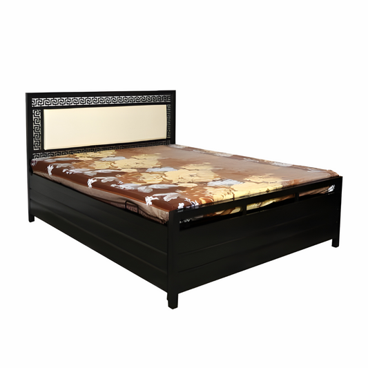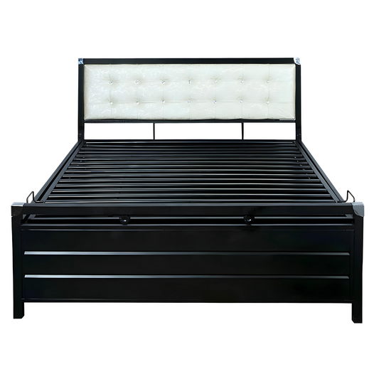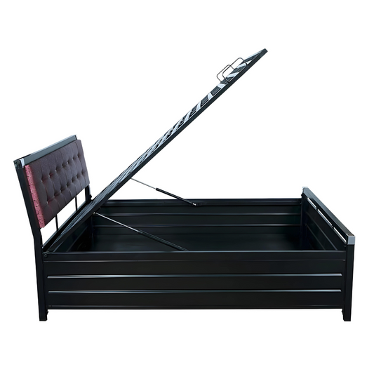 Turbo Hydraulic Storage Metal Bed (Color - Black) with Designer Headrest