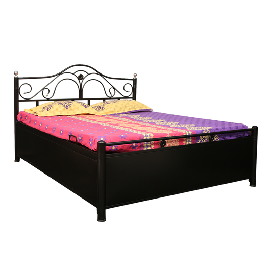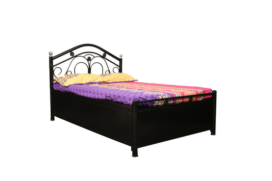 Urban Hydraulic Storage Metal Bed (Color - Black) with Designer Headrest