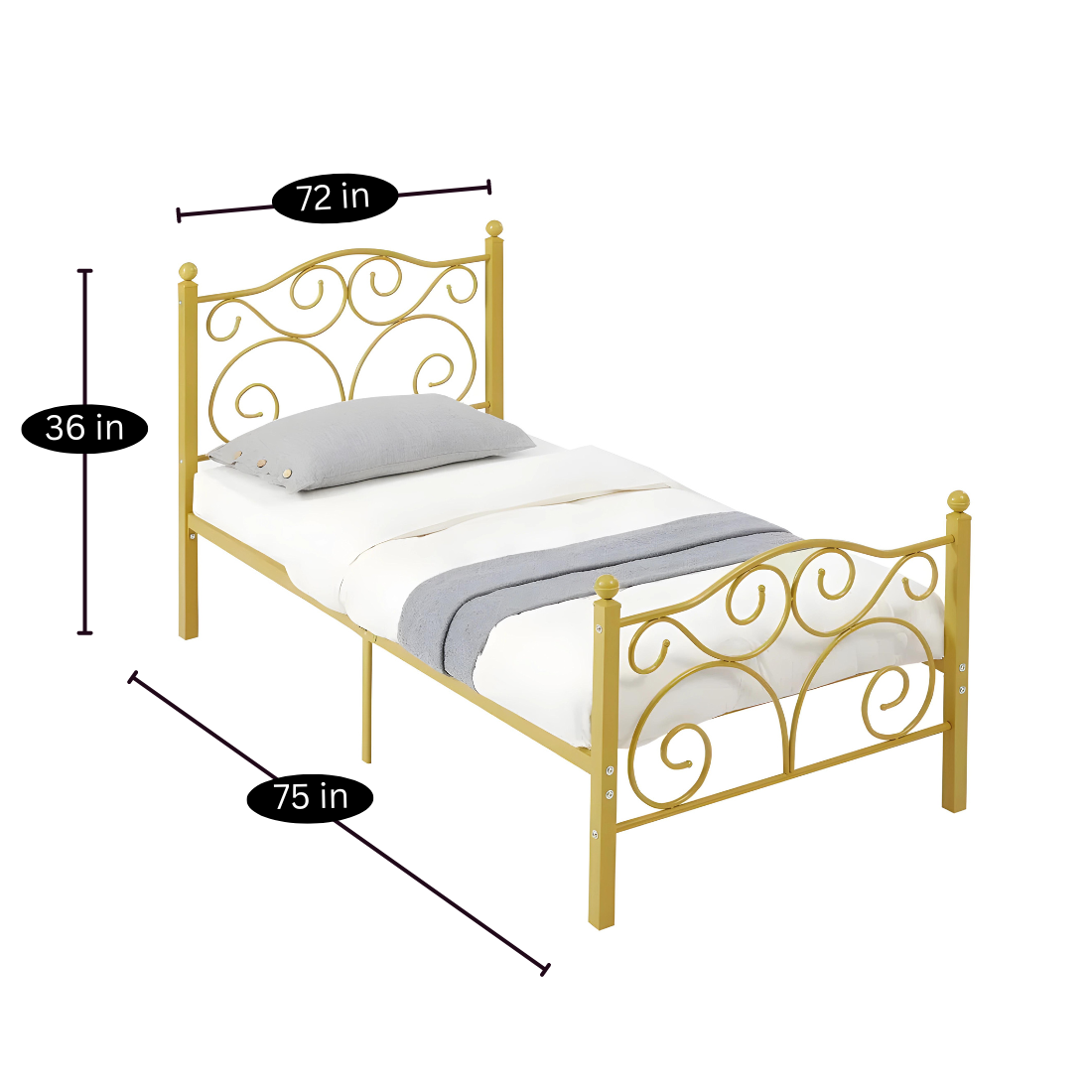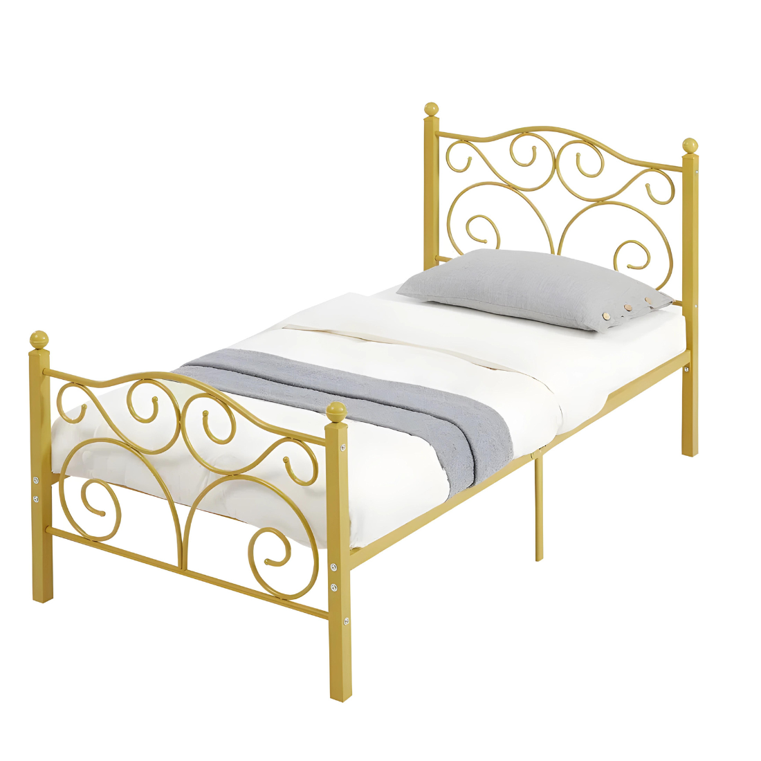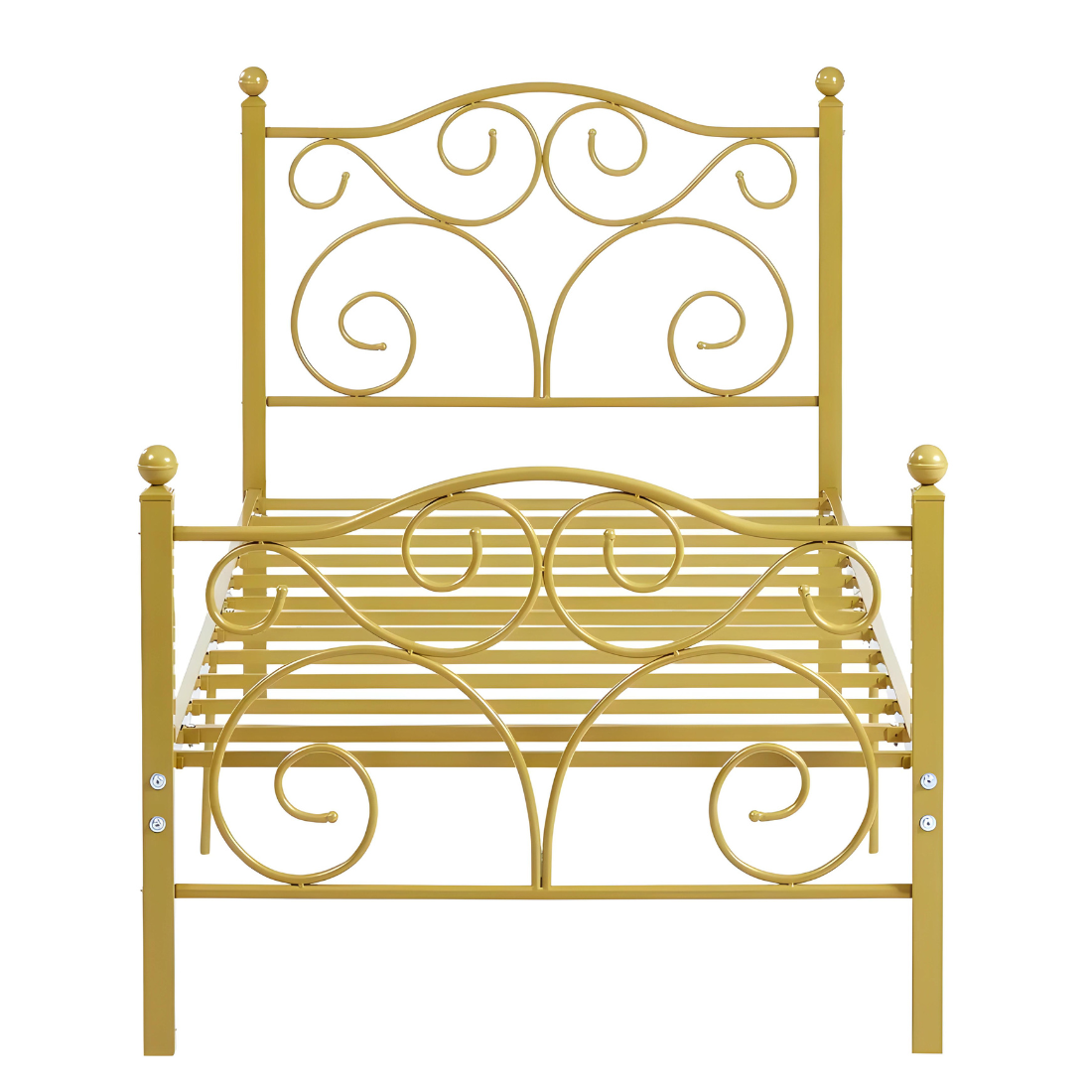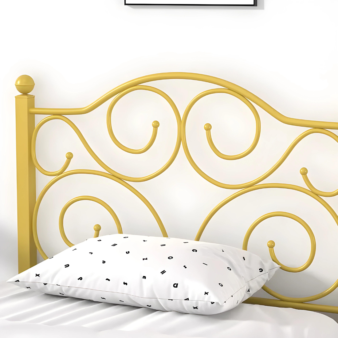 Deltoid Without Storage Metal Bed with Designer Headrest (Color - Golden)