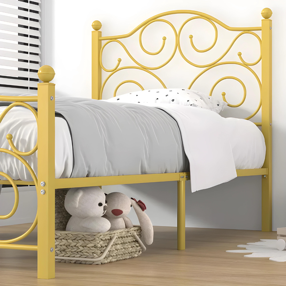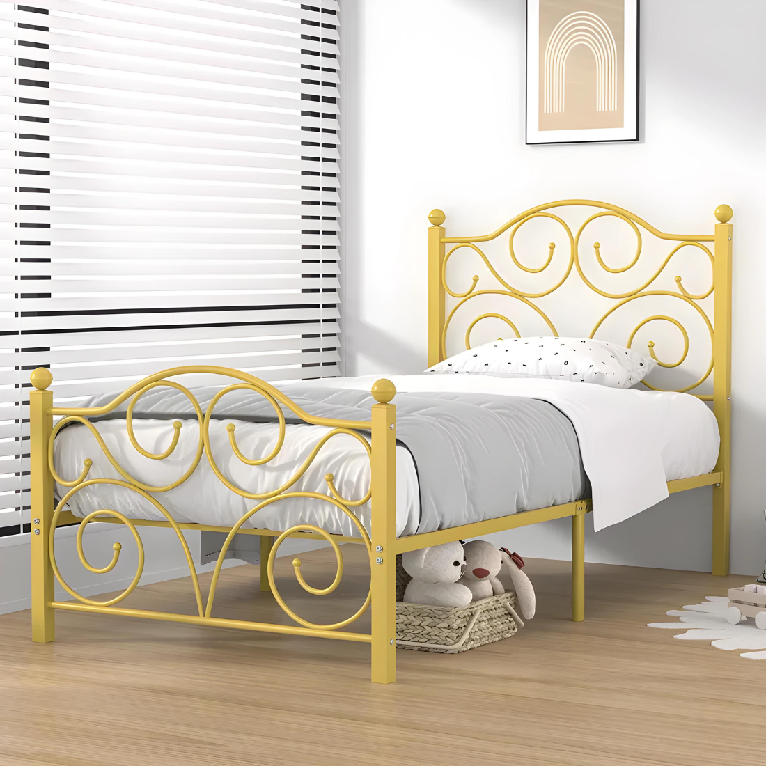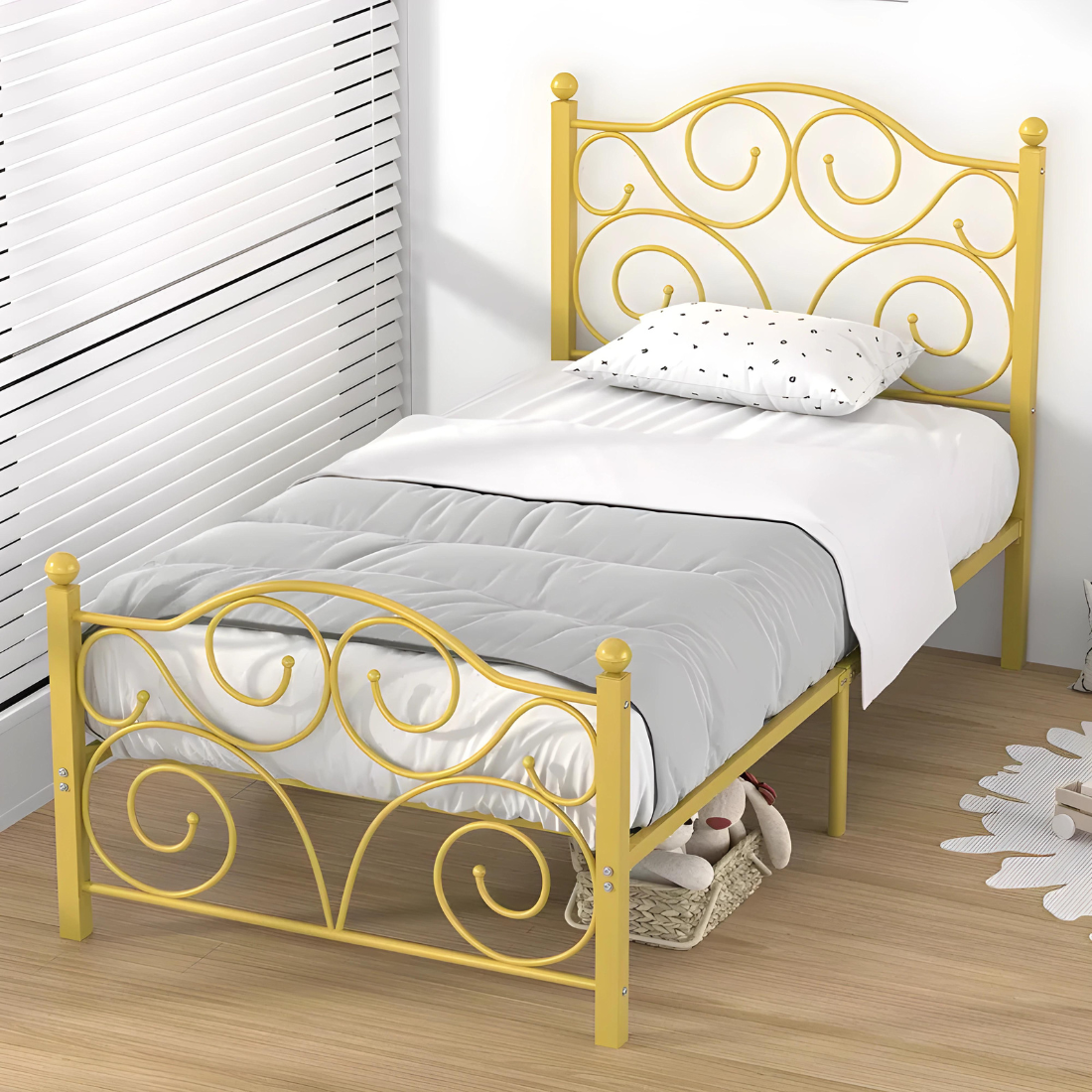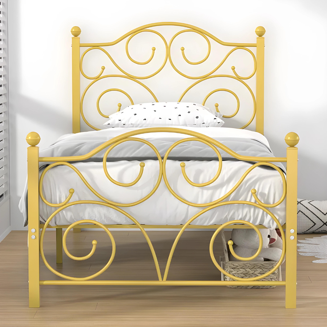 Deltoid Without Storage Metal Bed with Designer Headrest (Color - Golden)