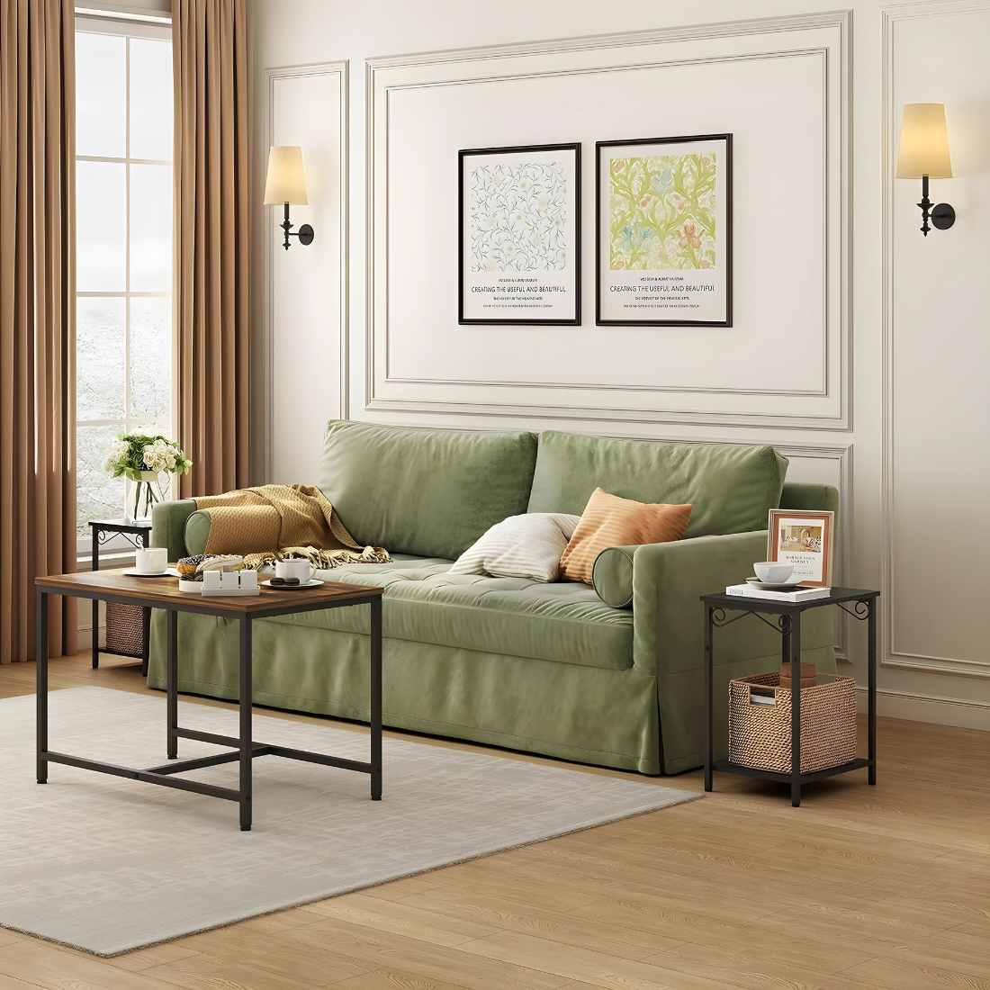 Designer Metal Side Table in Black Finish and Powder Coating with Wooden Top