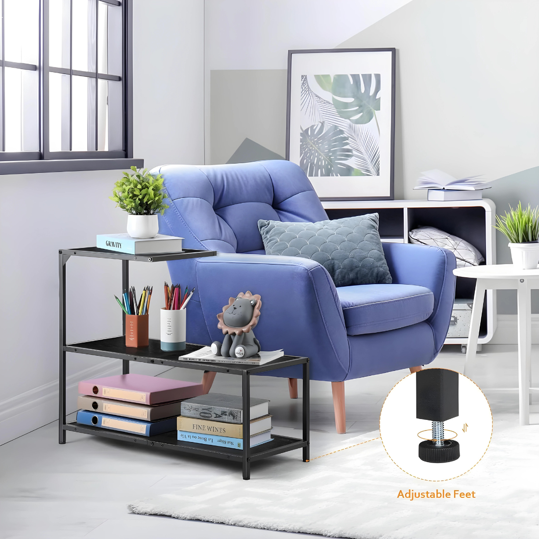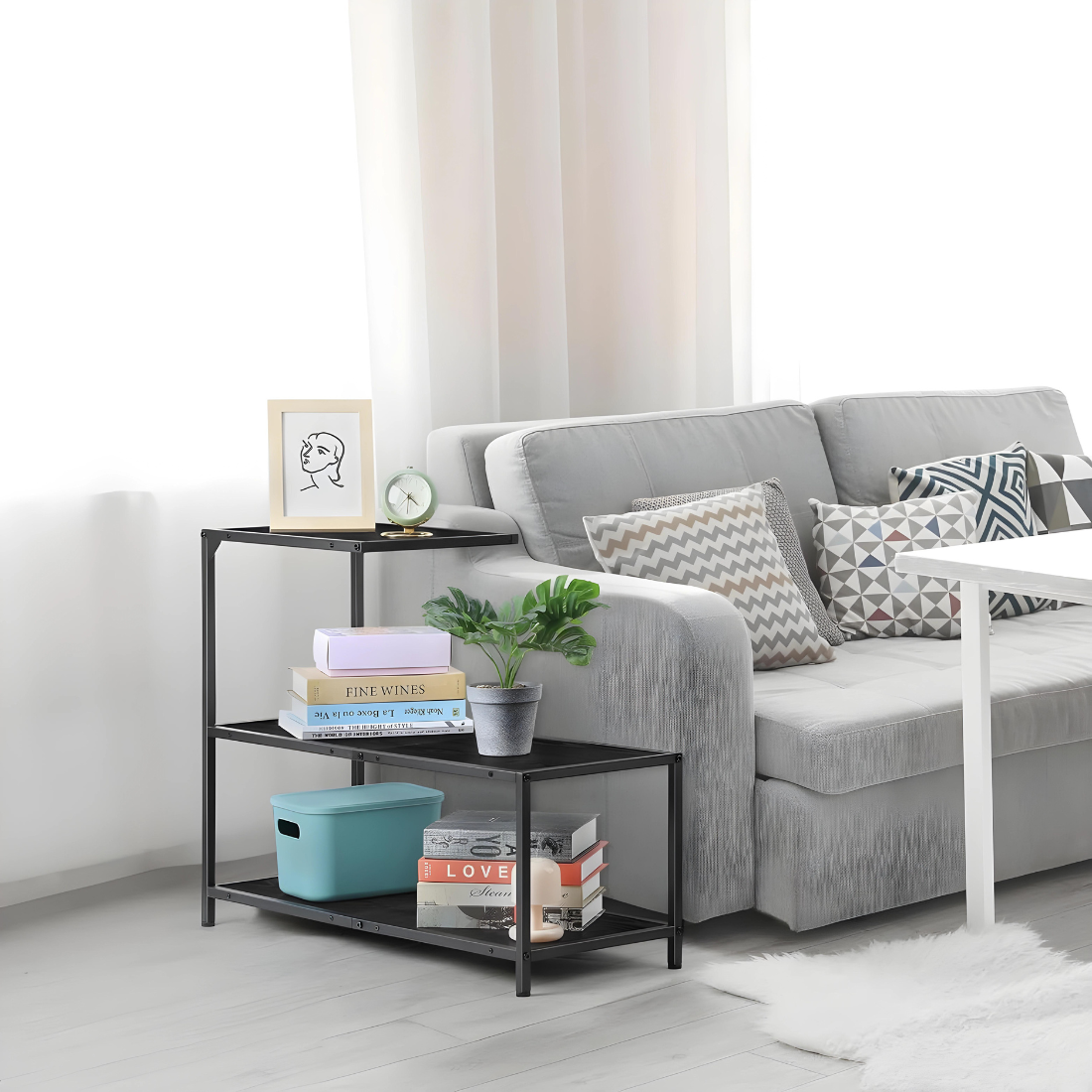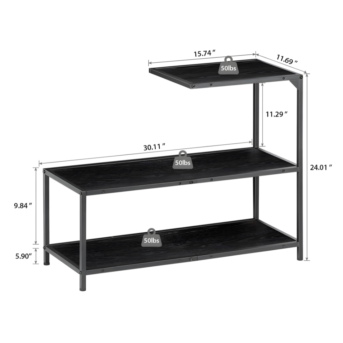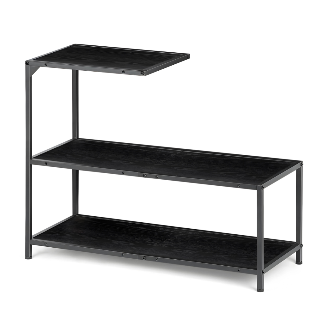 Designer Multi Purpose Metal Stand in Black Finish and Powder Coating with Wooden Slab