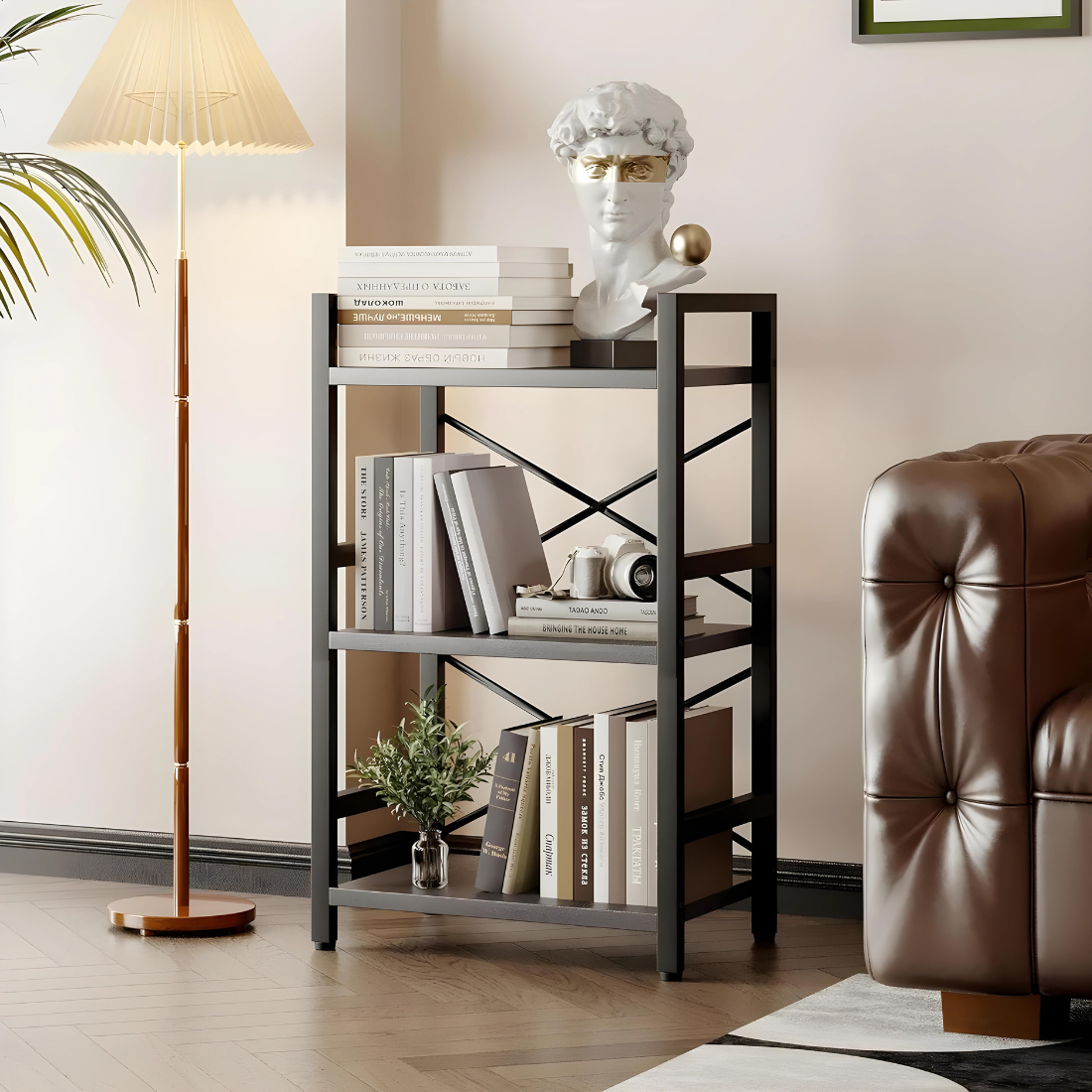 Designer Multi Purpose Metal Stand in Black Finish with Wooden Slab