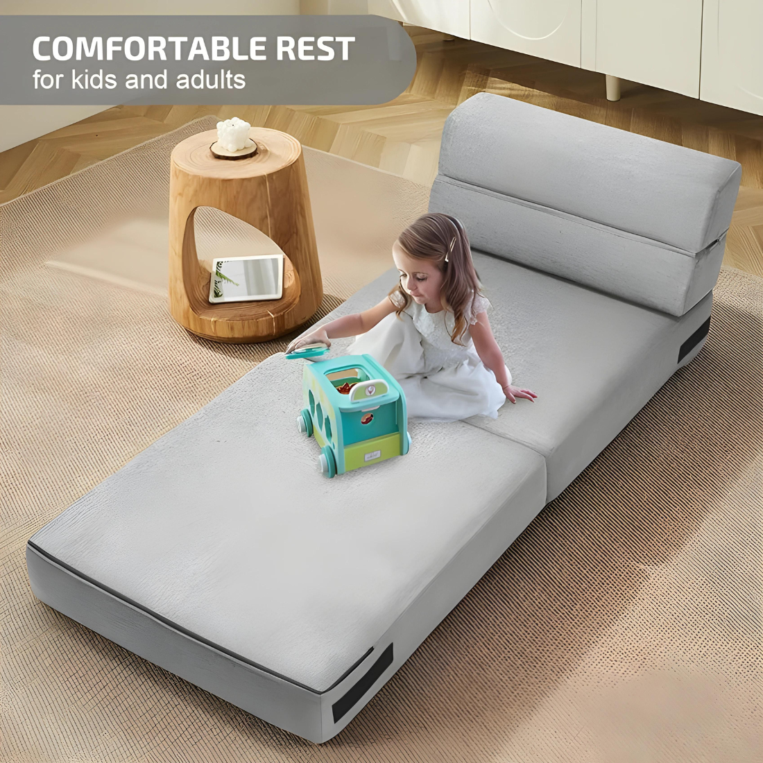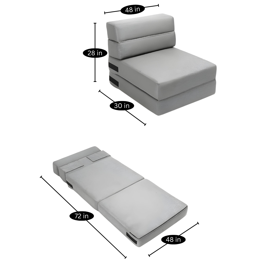 Safa Designer Light Grey Foldable Mattress Sofa Bed with Designer Cushion